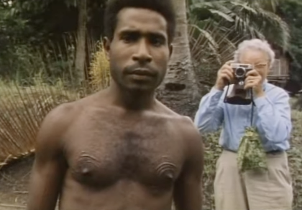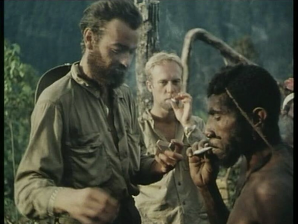 Au cours de la seconde moitié du 20e siècle, une île apparaît comme un terrain de jeu privilégié pour appliquer ce style documentaire : la Nouvelle-Guinée dont l’intérieur des terres est encore peu connu. En 1962, l’oscar du meilleur film documentaire est par exemple décerné au film Le Ciel et la Boue sorti un an avant. Ce documentaire relate la traversée sud-nord de la partie occidentale de l’île en 1958 en jouant toujours sur les mêmes codes : rencontre avec tribus locales introduite par un missionnaire catholique, prises de vue avec les autochtones utilisant des objets modernes, traversée dans la jungle reculée au prix des maladies qui tuent trois porteurs locaux, images choc avec des ossements humains et des crânes d’ennemis servant de repose tête.